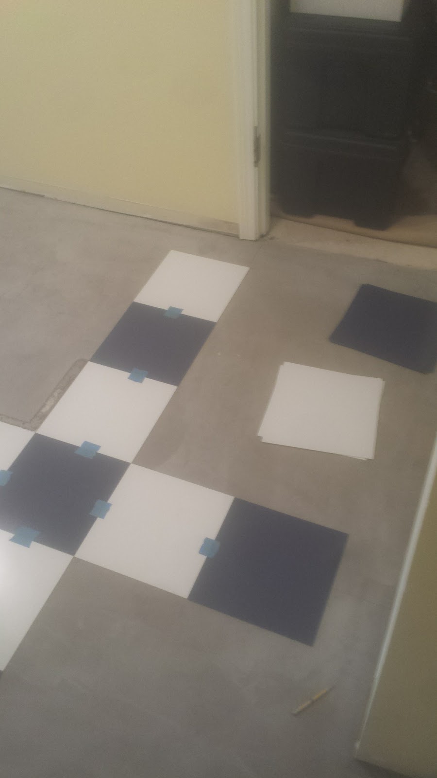 UPO quartz tiles UPO quartz tiles I did in two different rooms. The regular checkerboard pattern is in the kitchen, and on point / diamond pattern in the bathroom. Posted in Announcement